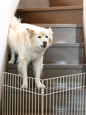 階段の前にゲートを置いても、簡単に鼻で動かしてしまうんです。