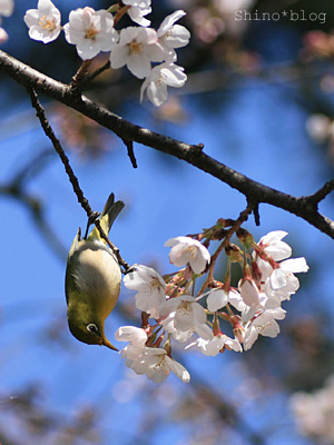 メジロさんが桜の花びらをついばむ姿がたくさん見られました。