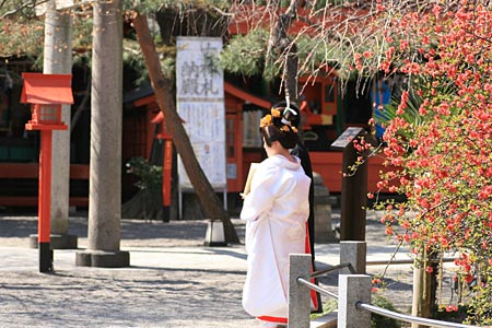 花嫁さんのバックには樹齢300~400年と言われる日本一のボケの木があって