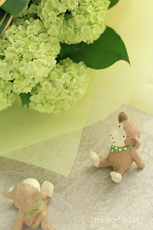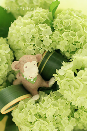 今回はナチュラル系のお花や大好きなグリーンのアジサイがたくさん入って