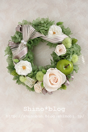 結局、私の好きな白×グリーン系にベージュのリボンを入れてみました。