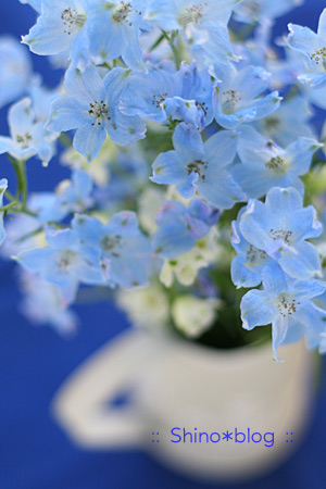 ネモフィラ、ワスレナグサ、そして写真の↑デルフィニウム。