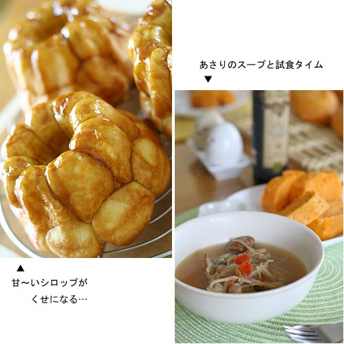 今月のパン教室のメニューはモンキーブレッドとポモドーロ。