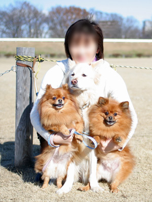夫にカメラを渡してワンコ達とやっとの思いで記念撮影。