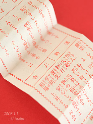 チラッと近くの人のおみくじを見る限り、そんなこともなさそう。(笑)