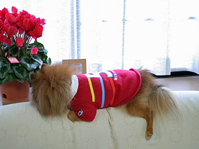 (本当はレッドソックスの真っ赤なベストを着せたいところ。。。)