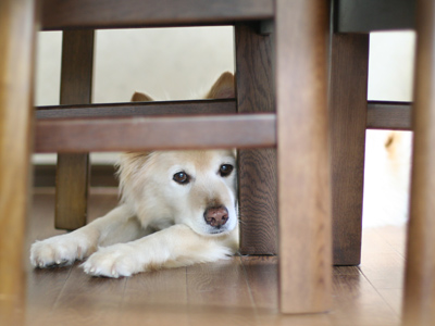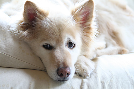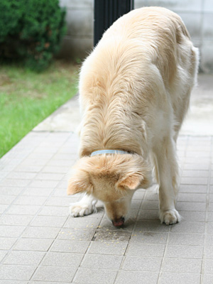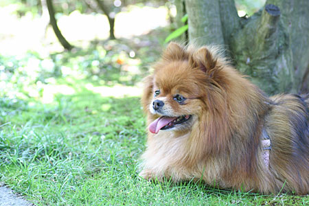 散歩から帰ったラヴィは木陰で休憩中。