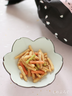 木の近くにお米をひとつかみ置いておきました。