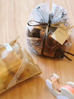 ラベルもカードも、そしてワックスぺーパーのバックのプリントも先生オリジナル。