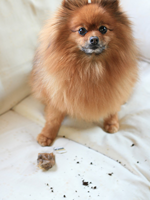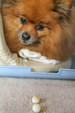 あいにくテーブルの上で収穫がなくて残念そうなチャチャ丸の表情。
