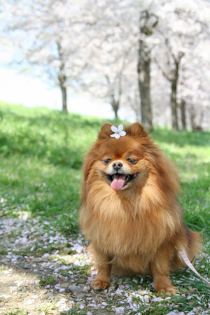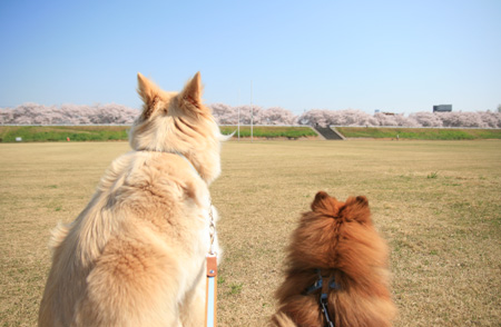 今年のチャチャ丸と桜のコラボ写真はこれだけ。後姿だけ。。。